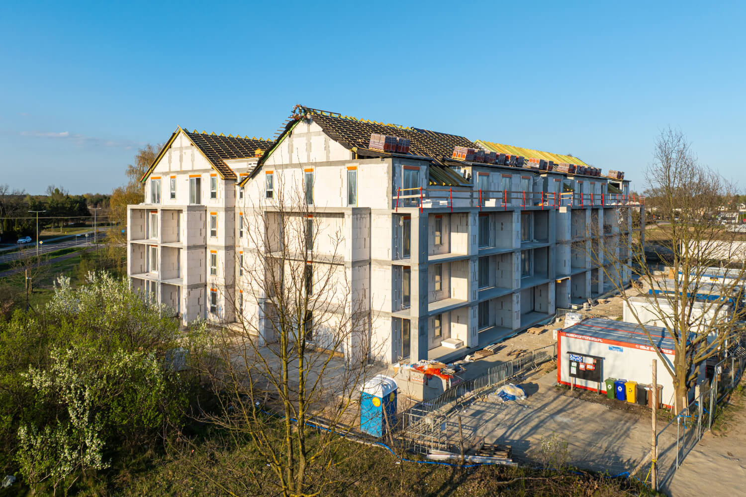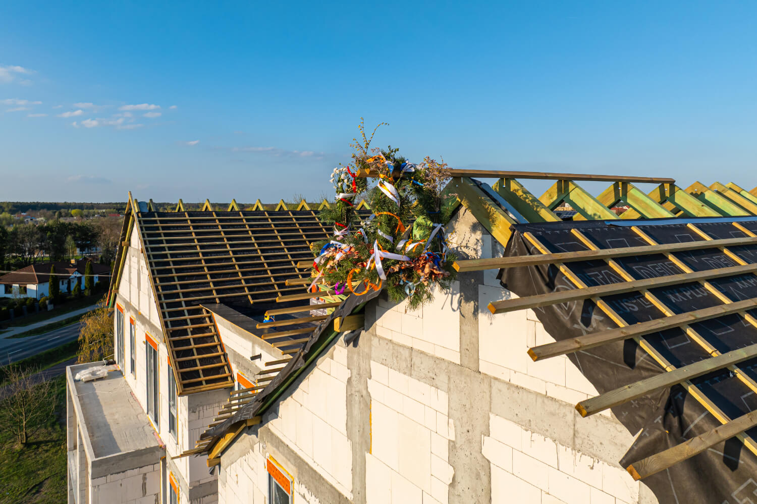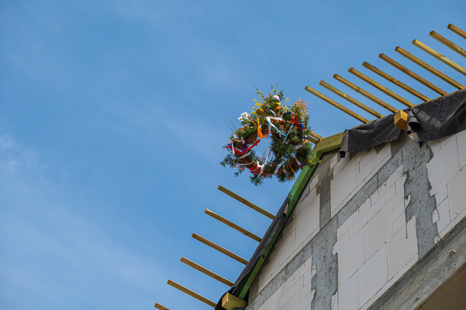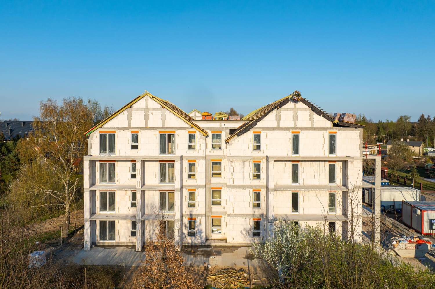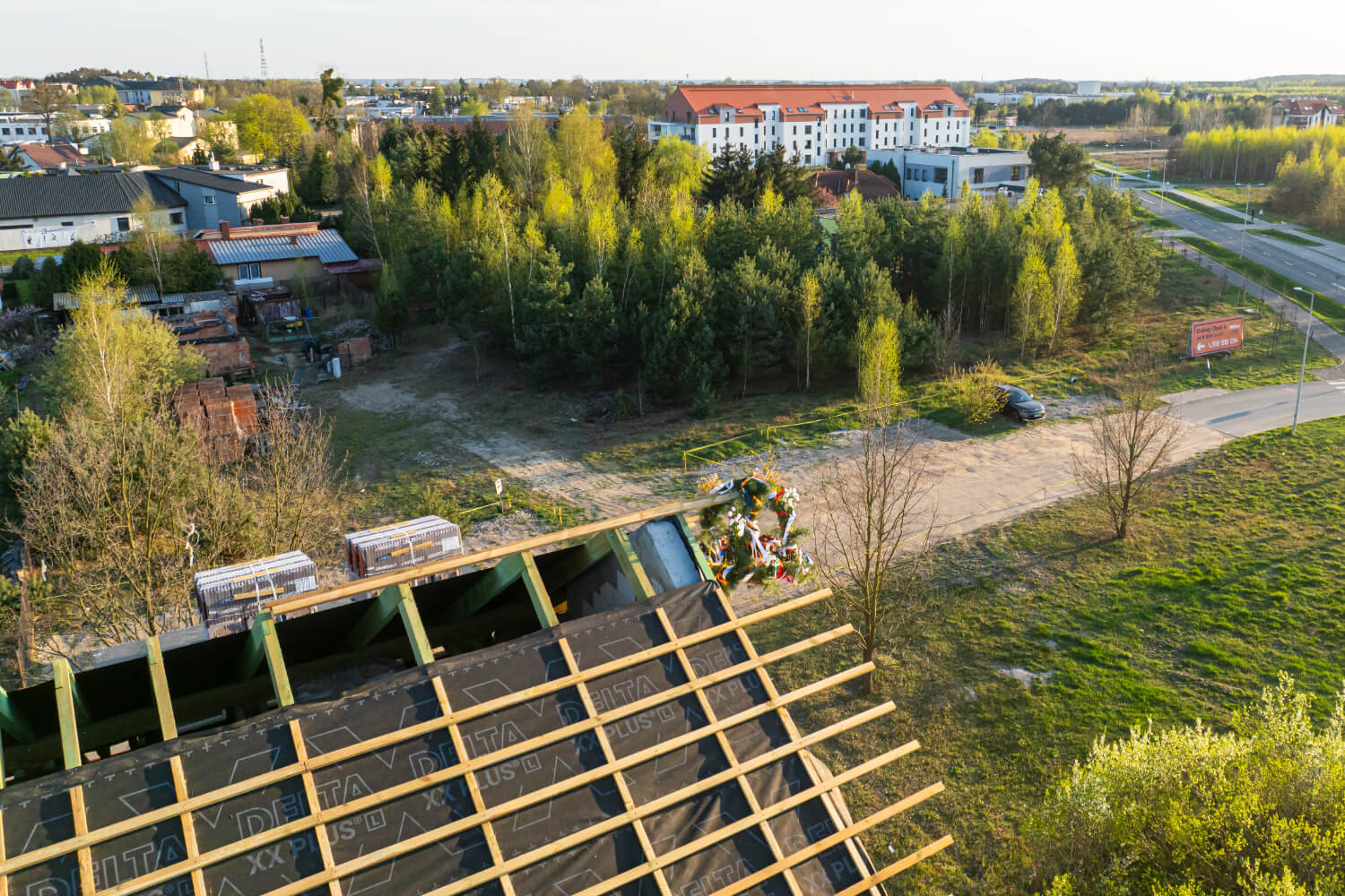 Tuż przed Świętami Wielkanocnymi na budowie przy ul. Dzikiej Gęsi 6 zawisła symboliczna wiecha, która tradycyjnie oznacza zakończenie etapu stanu surowego otwartego. To ważny moment zarówno dla zespołu budowlanego, jak i dla przyszłych mieszkańców – inwestycja Betpol Dom rozwija się zgodnie z planem.