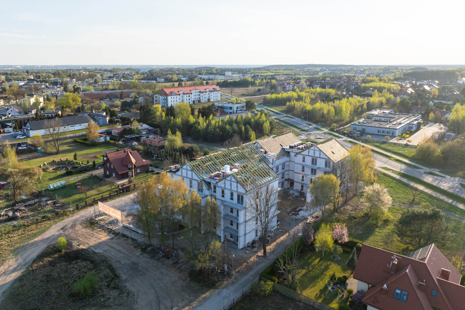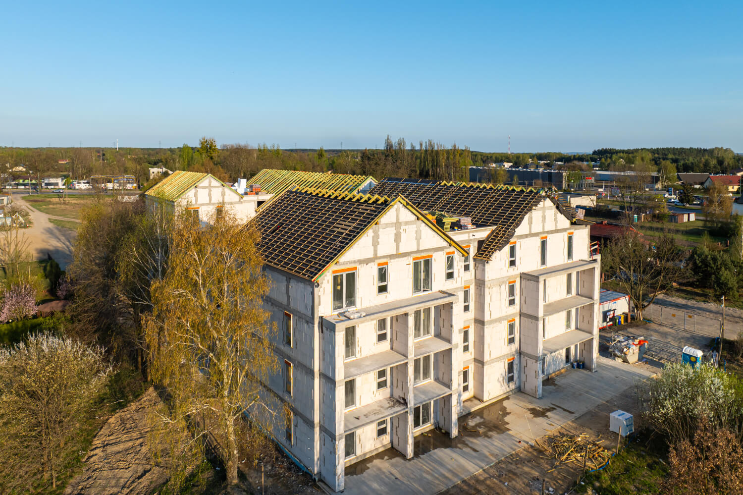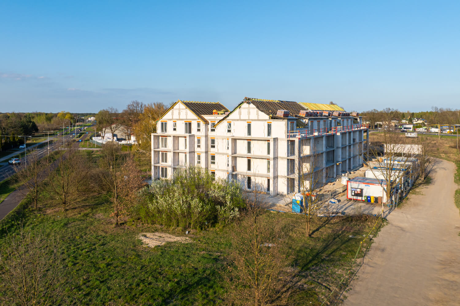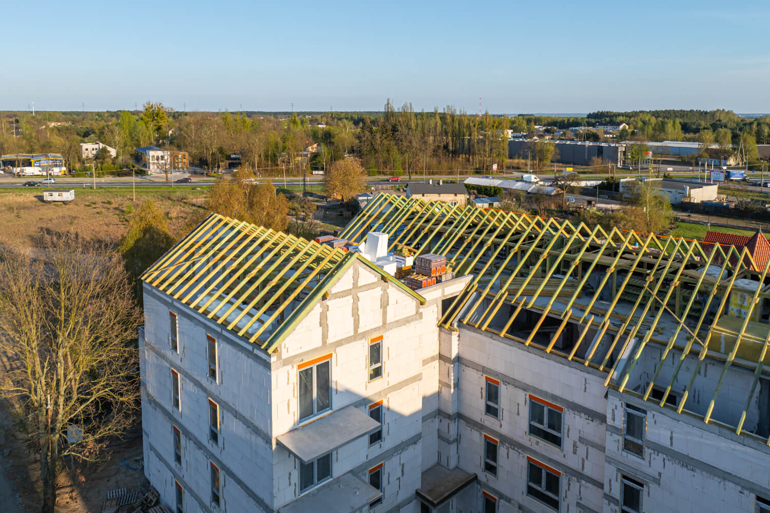 Tuż przed Świętami Wielkanocnymi na budowie przy ul. Dzikiej Gęsi 6 zawisła symboliczna wiecha, która tradycyjnie oznacza zakończenie etapu stanu surowego otwartego. To ważny moment zarówno dla zespołu budowlanego, jak i dla przyszłych mieszkańców – inwestycja Betpol Dom rozwija się zgodnie z planem.