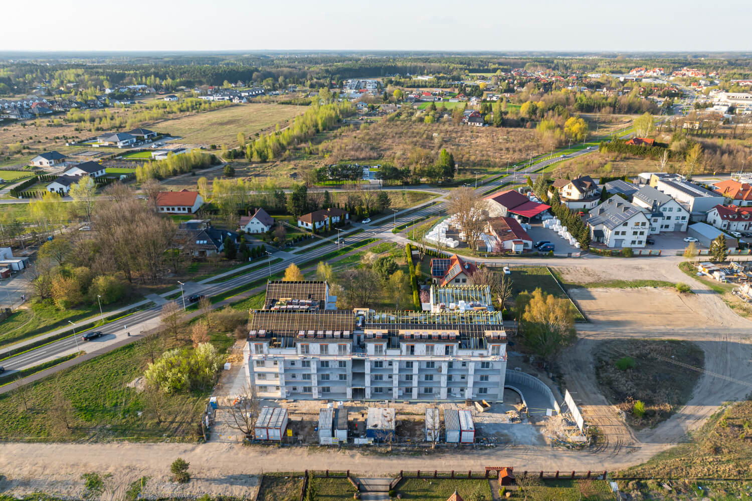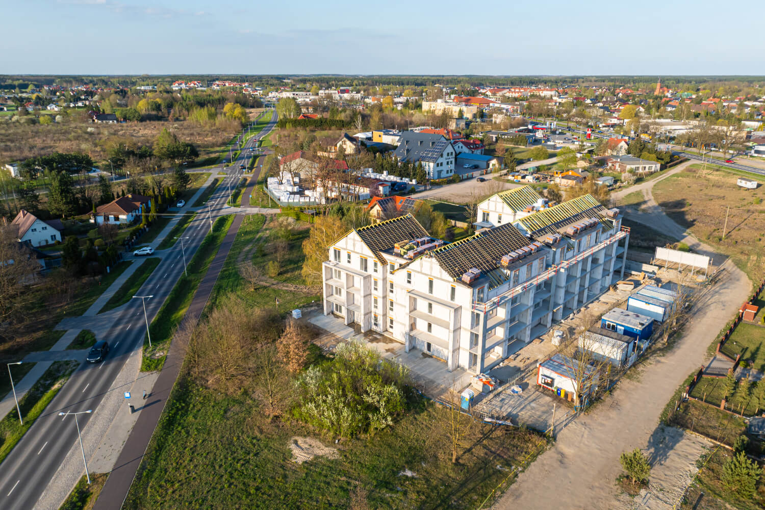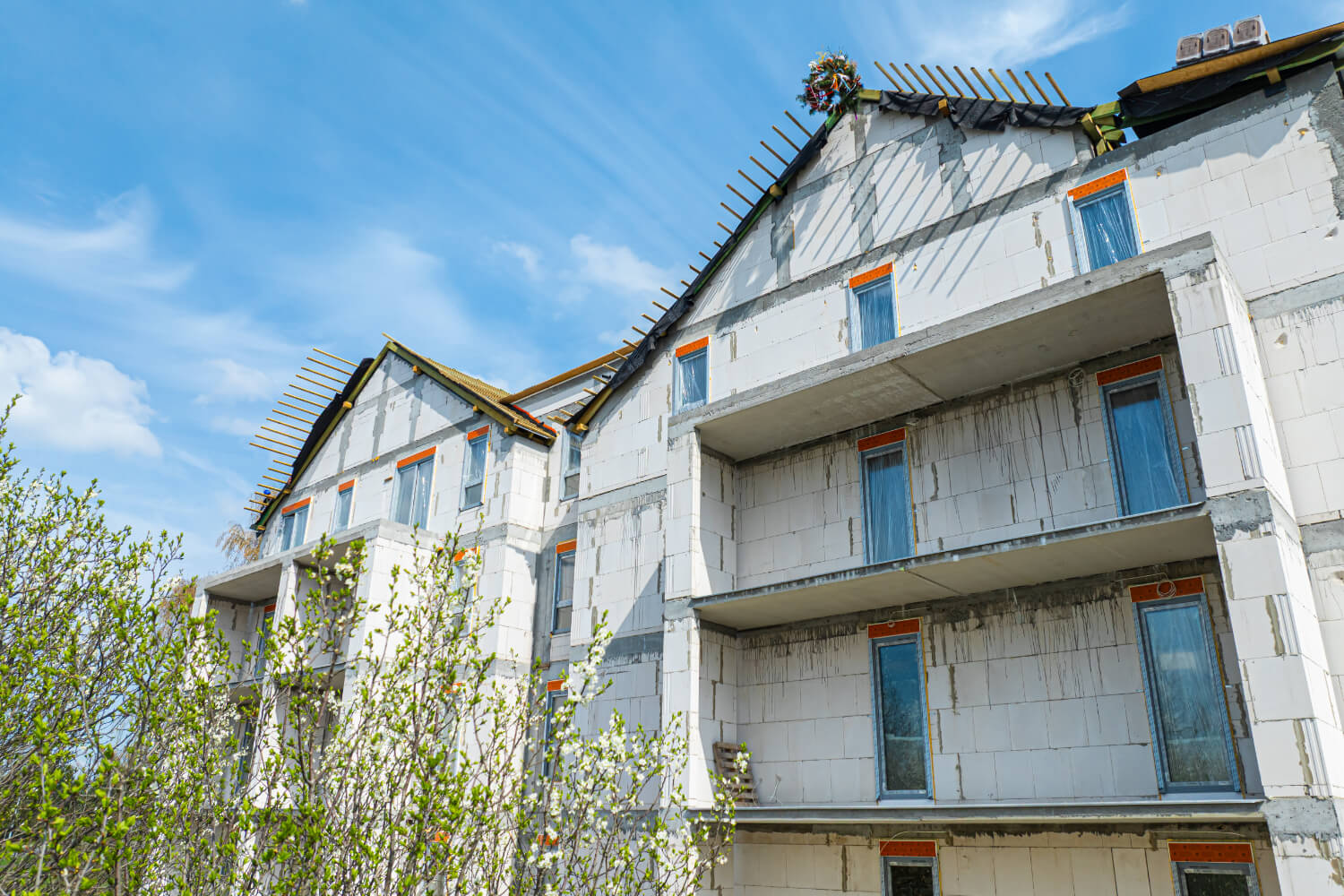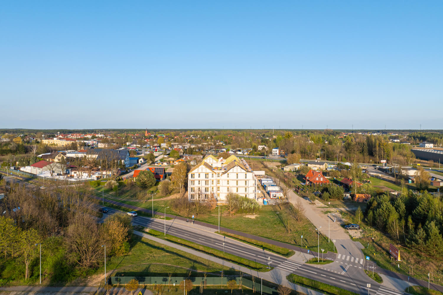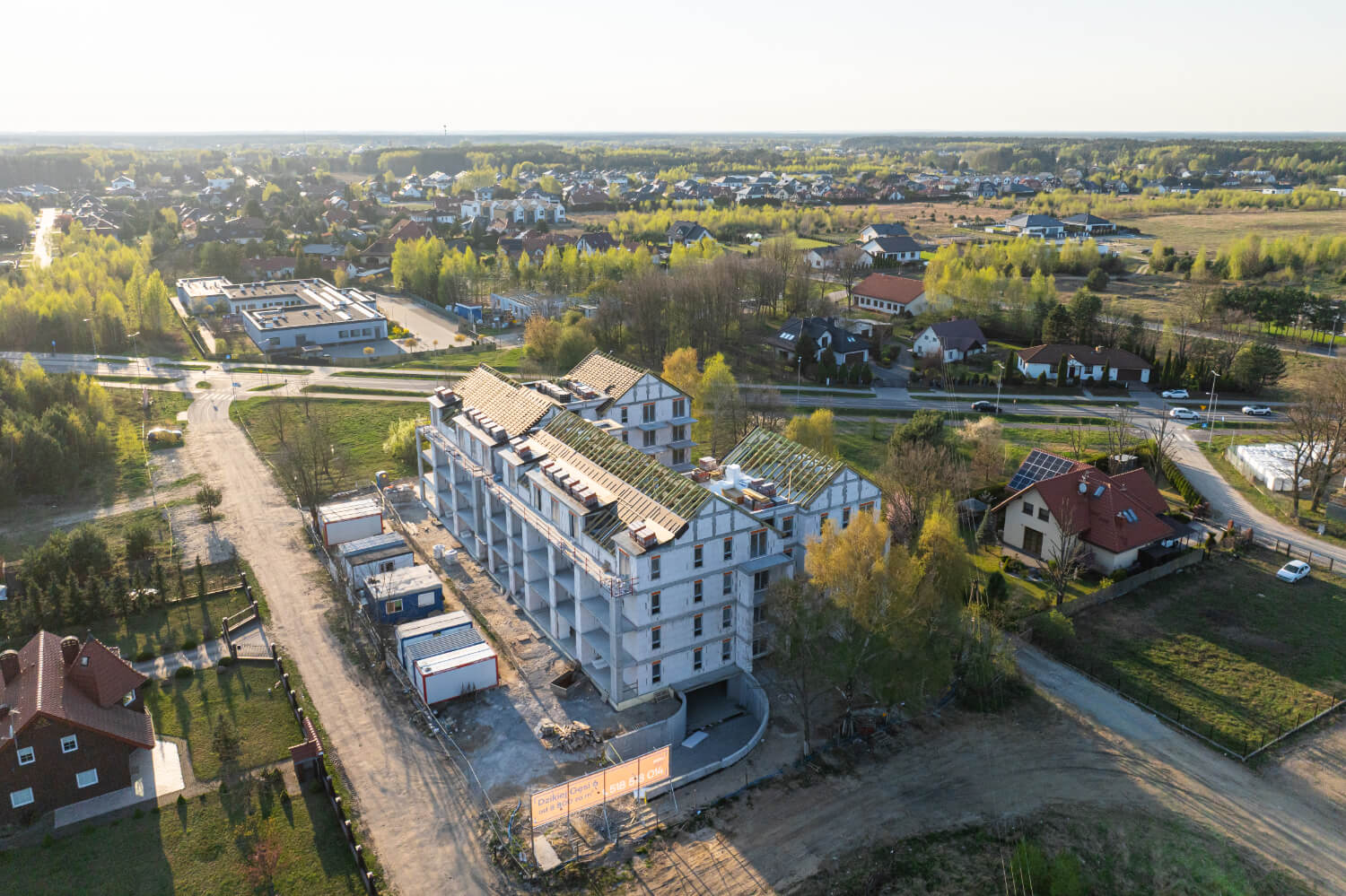Tuż przed Świętami Wielkanocnymi na budowie przy ul. Dzikiej Gęsi 6 zawisła symboliczna wiecha, która tradycyjnie oznacza zakończenie etapu stanu surowego otwartego. To ważny moment zarówno dla zespołu budowlanego, jak i dla przyszłych mieszkańców – inwestycja Betpol Dom rozwija się zgodnie z planem.