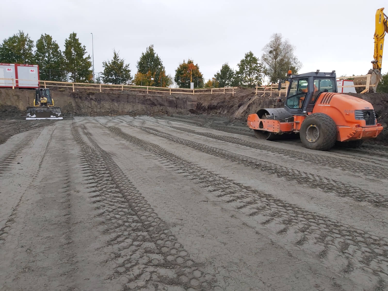 Nadszedł czas na wbicie pierwszej łopaty i wpis do dziennika o przejęciu obowiązków kierownika budowy. Na placu pojawiły się ciężki sprzęt. Trwają roboty ziemne. Do współpracy zaprosiliśmy wykwalifikowanego i doświadczonego geotechnika, który od samego początku pełni nadzór geotechniczny.